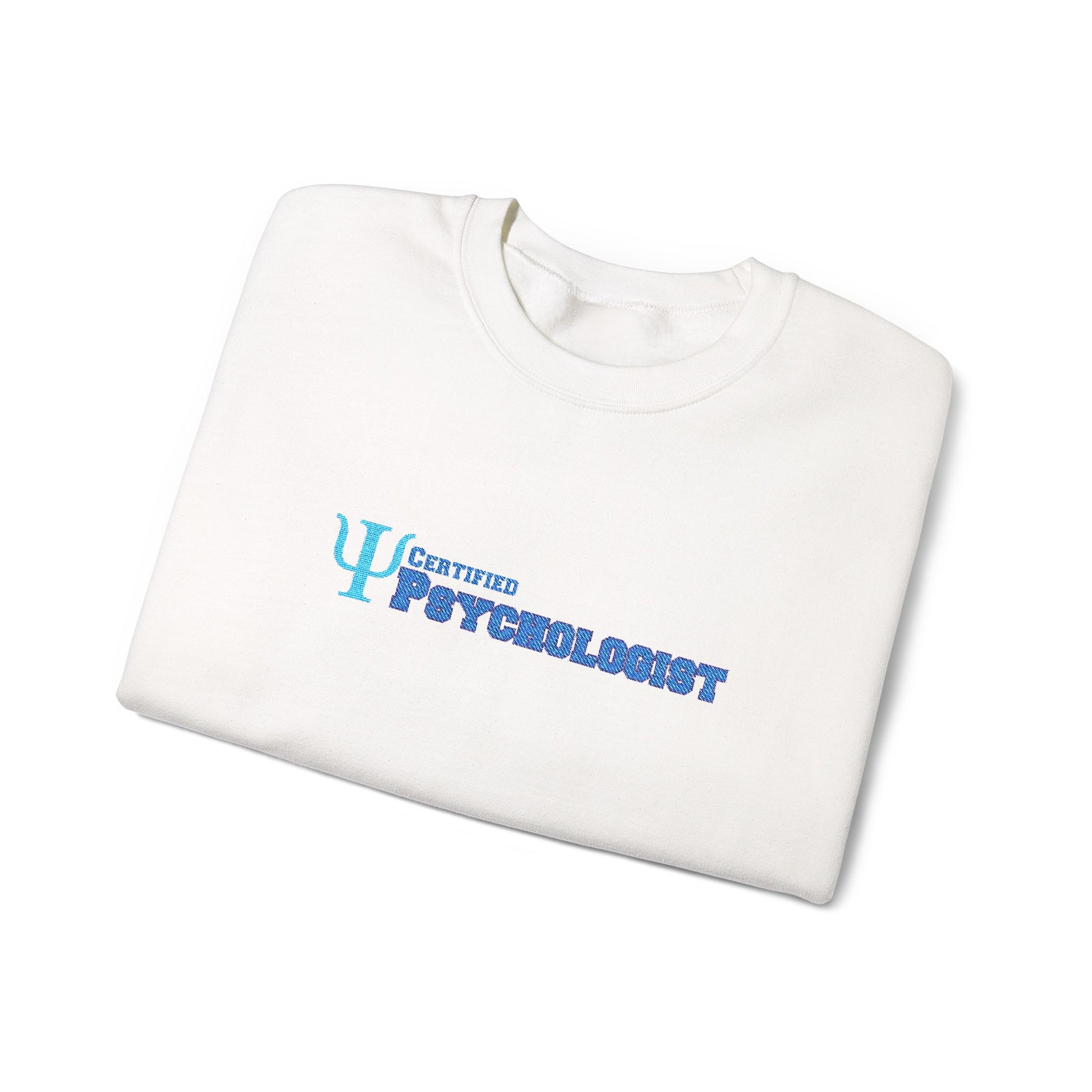 ⭐️ Classic crewneck design with "Certified Psychologist" text and psi symbol